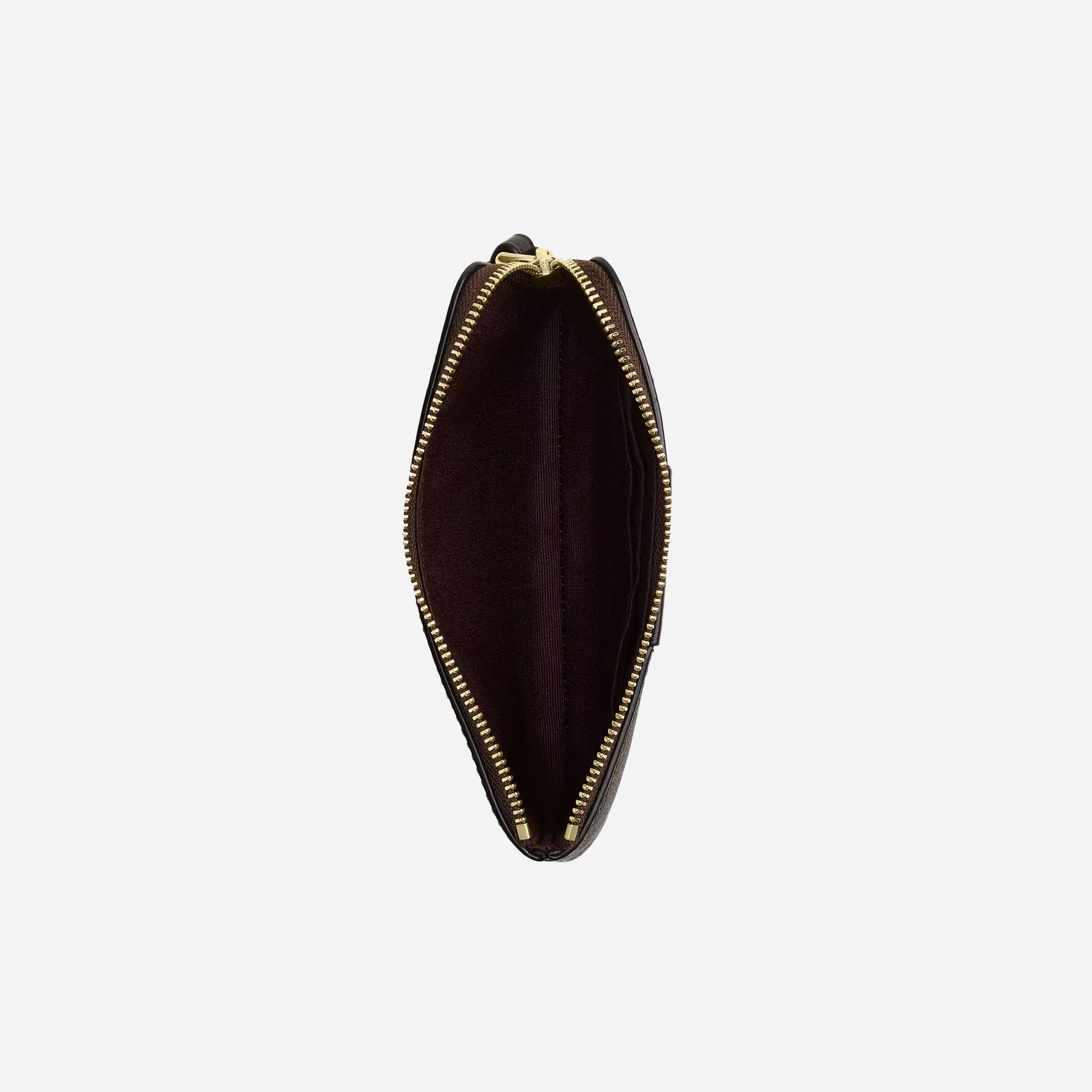 The Coach Corner Zip Wristlet in Signature Canvas features the iconic monogram pattern with refined leather accents a secure zip closure and wrist strap perfect for carrying essentials in compact stylish form every day.